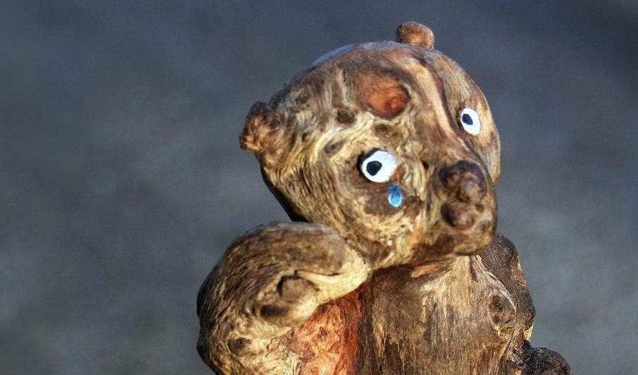 "-Inte ska du gråta nu när de högg gammelskogen. Det är inte vidare artigt. Du får väll hitta en ny att tralla runt i. - Det är just det , snyftade björnflickan. Det finns ingen ny gammelskog." "-Åh nej, varje oktober kommer magsåret som ett brev på posten. Stress, säger doktorn. Jag måste varva ned. Det är bara det att just i oktober känner jag mig alltid så jagad." Foto: Maria Westerberg