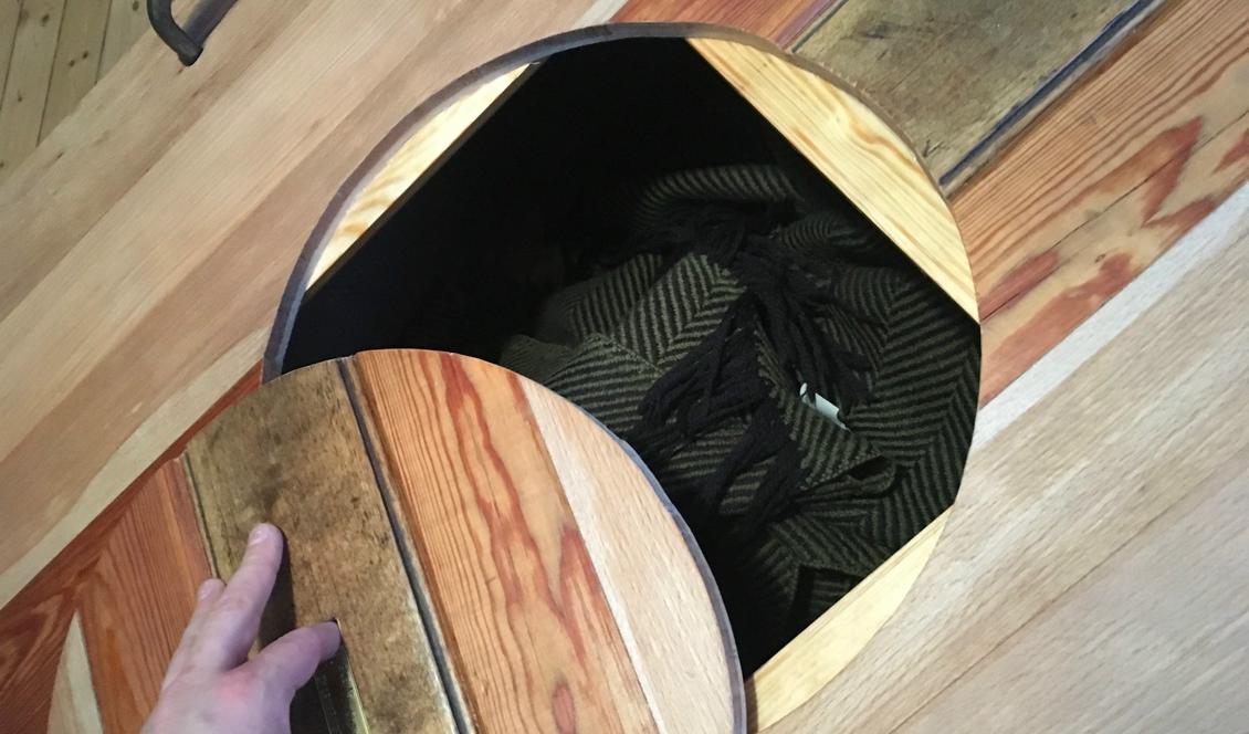 Fodralen tillverkas i ett stycke färskt trä samt en torr botten, där bottnen kläms i eftersom det färska träet krymper när det torkar. Inget lim behövs, bara kännedom om materialet.
