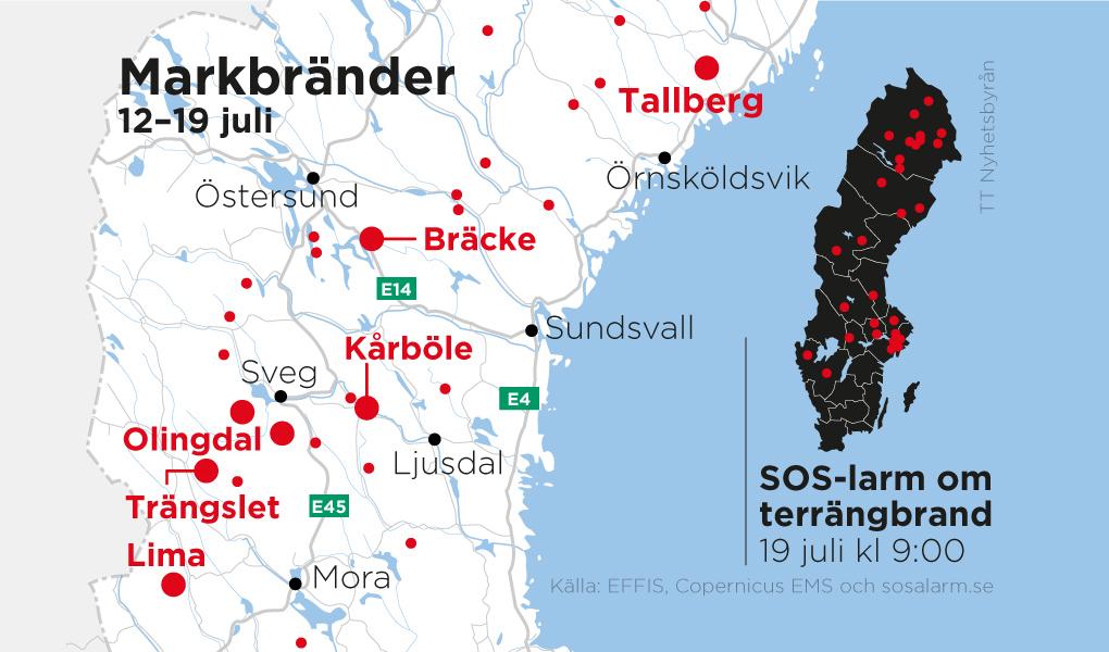 Just nu härjar tre större bränder, i Gävleborg, Jämtland och Dalarna. Men det brinner även på flera andra platser i Sverige. Bränderna omfattar en yta på minst 20 000 hektar vilket enligt MSB är en större yta än den som eldhärjades i Västmanland 2014.