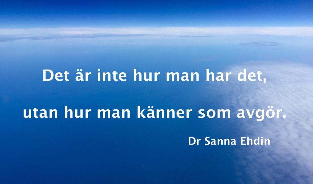 Det är inte hur du har det, utan hur man känner sig – som avgör. Det är en enkel mening att säga, men kanske inte lika lätt att leva. När du inte låter hur du har det få styra dig – även under svåra omständigheter – då har du kommit mycket långt.