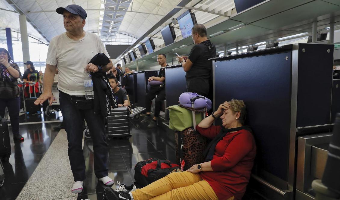 Omkring 30 demonstranter hängde sig kvar på flygplatsen, samtidigt som städare tog bort spåren av blod och skräp från natten, och incheckningarna hölls öppet som vanligt.