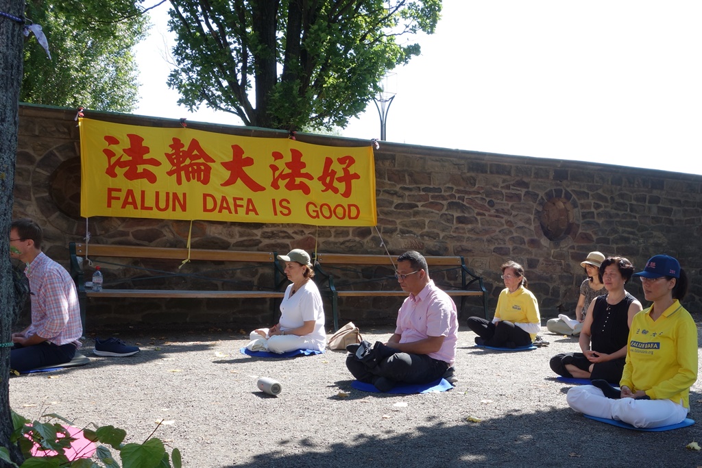 Meditation vid Stockholms stadshus, den 19 juli 2019. Foto: Eva Sagerfors/Epoch Times