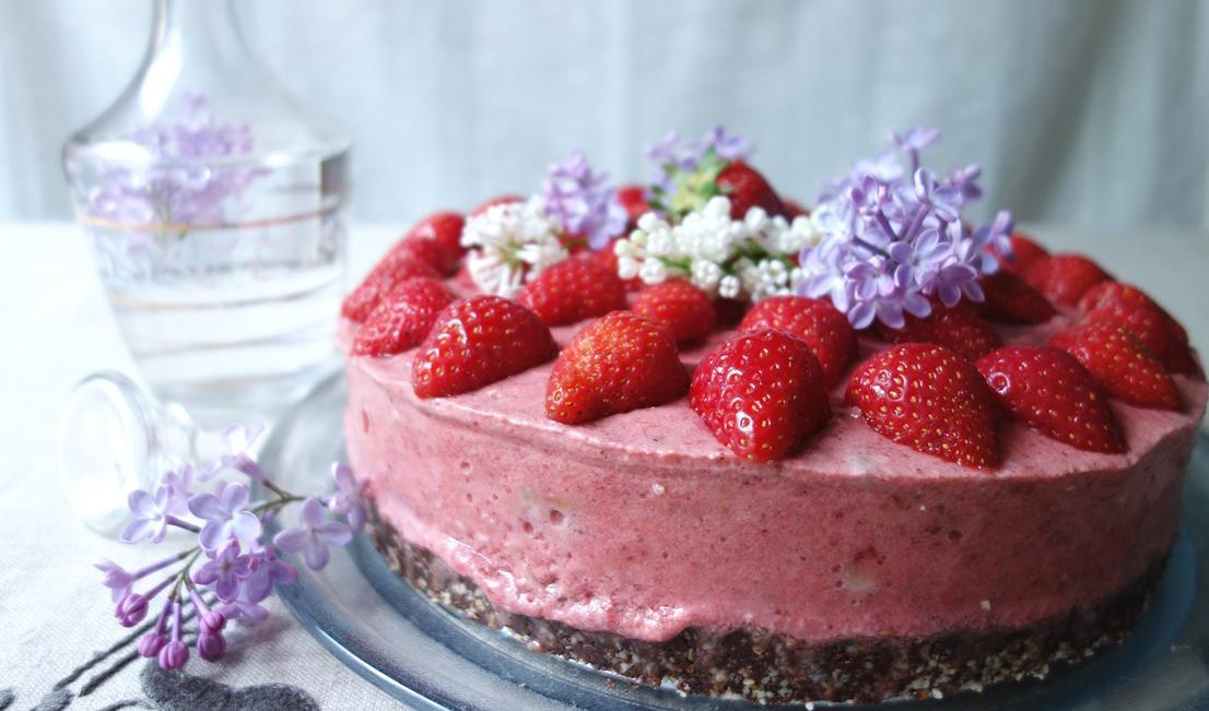 Jordgubbsglasstårtan passar bra till avslutningar, fester, födelsedagar eller när man vill ha det mysigt ihop. Den är enkel att göra och kan förberedas långt innan. Tårtan är mättande och gjord av ingredienser som kroppen mår bra av. Istället för socker är den sötad med honung och dadlar.
