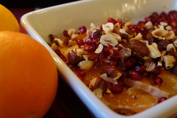 Apelsinsallad med rostade nötter och granatäpple