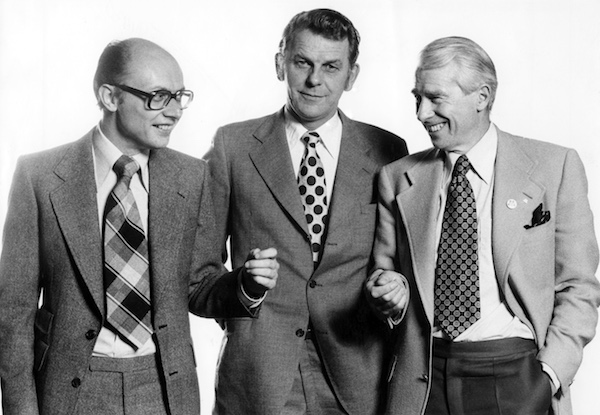 Per Ahlmark tillsammans med sina borgerliga partiledarkollegor Thorbjörn Fälldin (C) och Gösta Bohman (M) det historiska valåret 1976. Bohman gick bort 1997, Fälldin 2016. Foto: SvD /TT