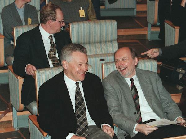 Bengt Westerberg och Per Ahlmark på Folkpartiets landsmöte i Folkets Hus i Stockholm 1999. Foto: Jan Collsiöö