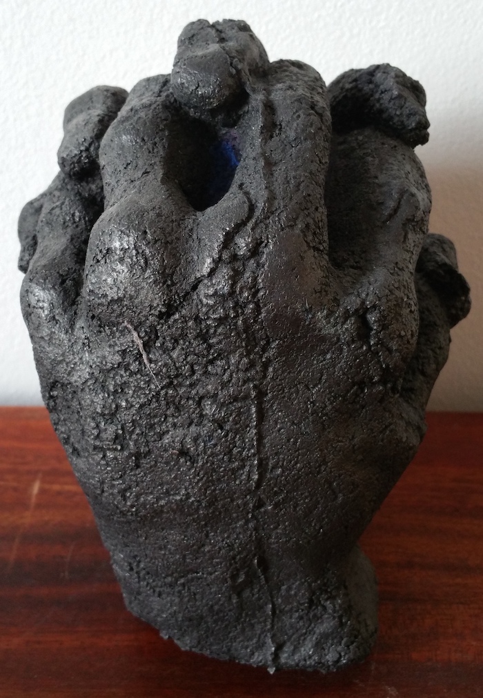 Efter att jag skulpterat händerna i lera tog jag form på dom och gjorde en gipsavgjutning.
