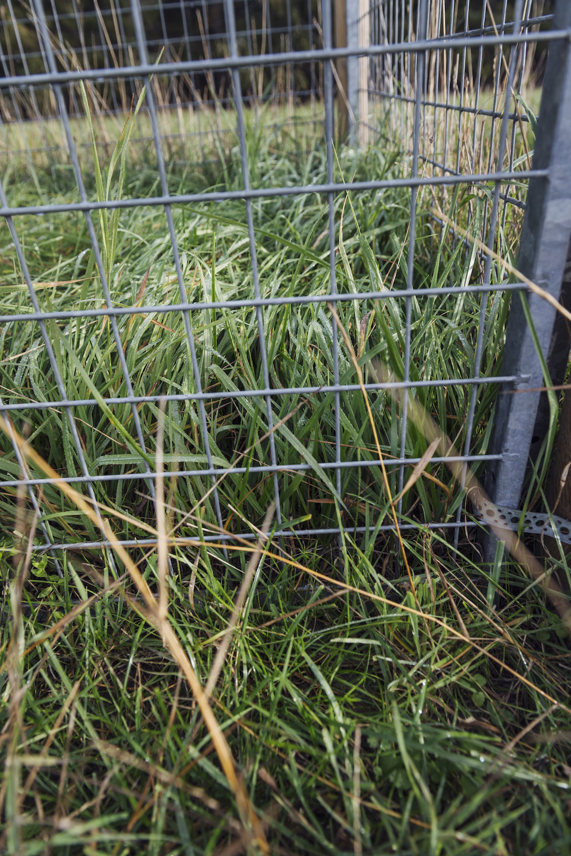 Skillnaden mellan gräset i den lilla buren och det på åkern är slående.
