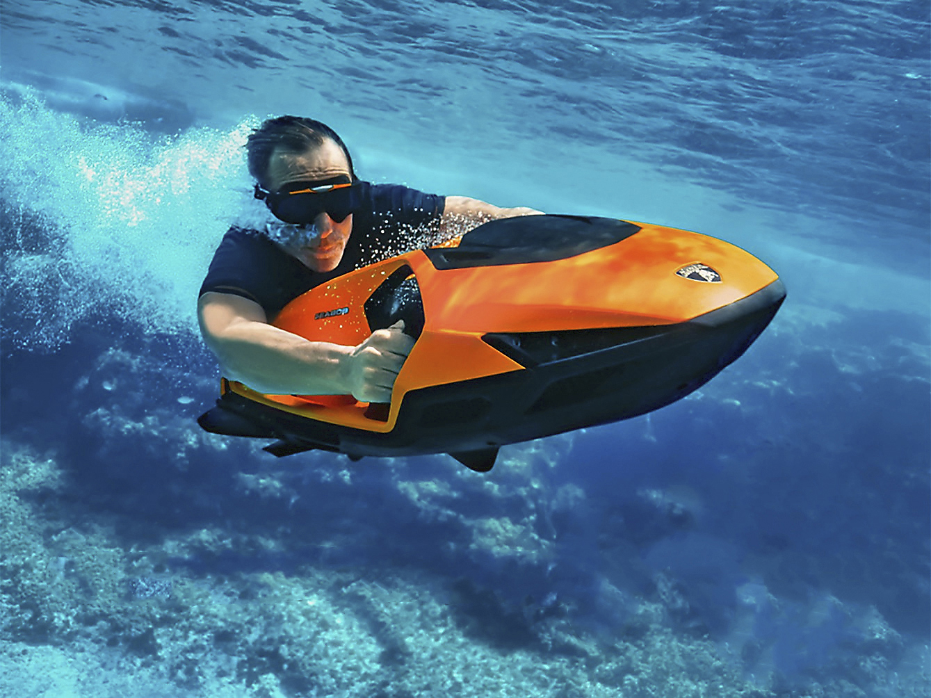 Det sägs att om man är ute på djupt vatten är det bäst att hålla munnen stängd, och ska du köpa Lamborghinis nya vrålåk gäller samma paroll. Italienarna har nämligen gett sig i lag med Seabob och resultatet är en – undervattensskoter! Lambo-vibbarna är tydliga, och designen för absolut tankarna till supersportbilarna som tillverkas i Sant’Agata Bolognese. Skotern trivs som fisken i vattnet och fixar 25 meters djupdykning tack vare en elmotor på nio hästkrafter som toppar 30 km/h under vattenytan. Försäljningen startar under nästa år och då återstår det att se om kunderna nappar.