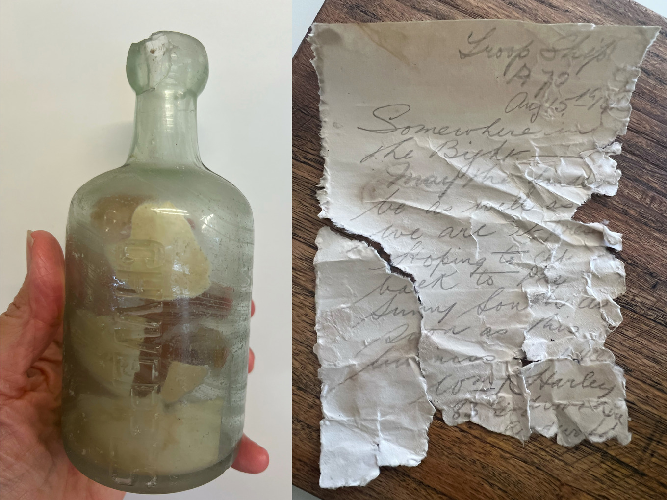 – Vi städar ofta på våra stränder, vi skulle inte bara gå förbi en bit skräp. Och så låg den här lilla flaskan där, säger Deb Brown.