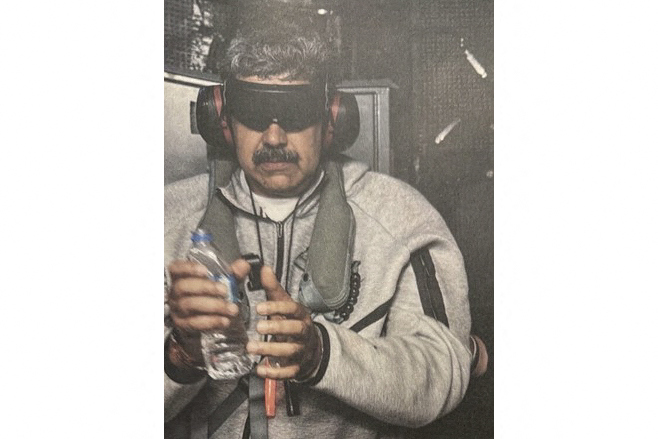 Trump har på Truth Social publicerat en bild som uppges föreställa Maduro, där denne bär handbojor, ögonbindel, hörselkåpor och grå träningskläder.