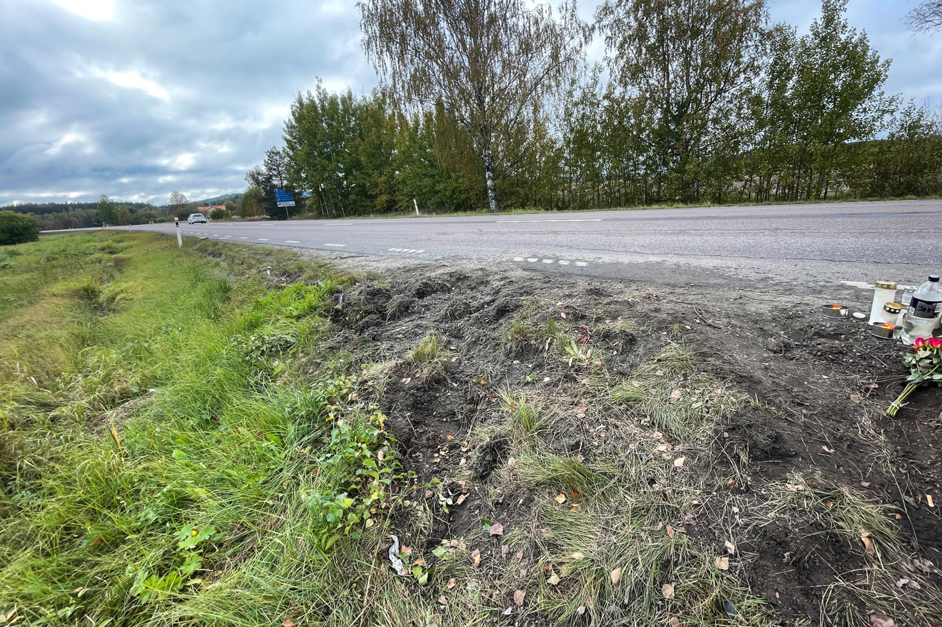 Många har kommit till olycksplatsen för att lämna blommor och tända ett ljus i vägrenen.