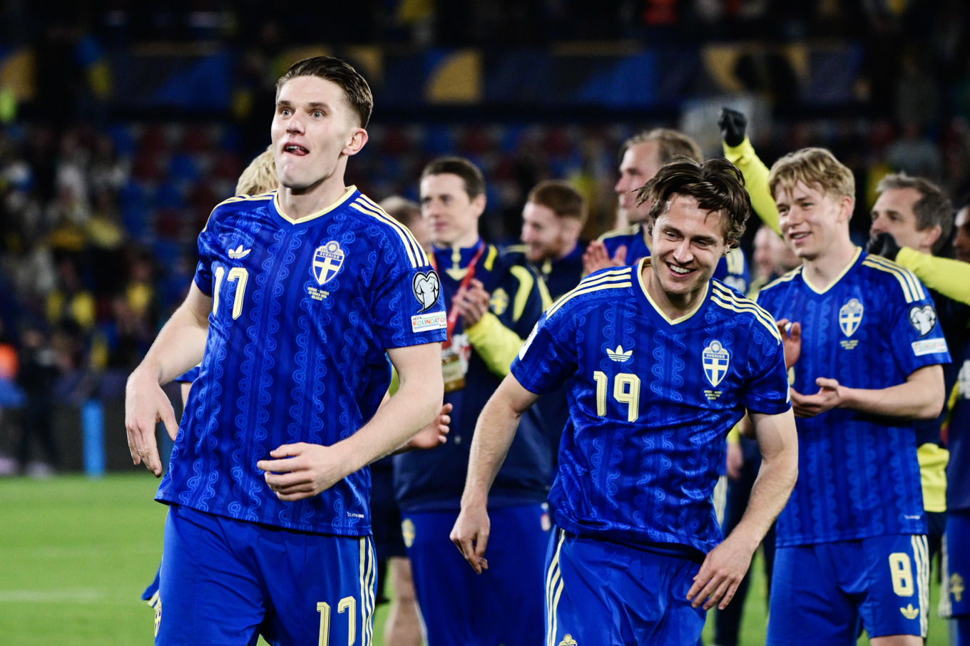 Övriga i truppen: Melker Ellborg (mv), Sunderland, Noel Törnqvist (mv), Como, Elliot Stroud, Mjällby, Daniel Svensson, Dortmund, Victor Eriksson, Hammarby, Taha Ali, Malmö FF, Roony Bardghji, Barcelona, Lucas Bergvall, Tottenham, Hugo Larsson, Frankfurt, Gustav Lundgren, Gais, Gustaf Nilsson, Club Brygge, Mattias Svanberg, Wolfsburg, Williot Swedberg, Celta Vigo, Besfort Zeneli, Union St Gilloise.