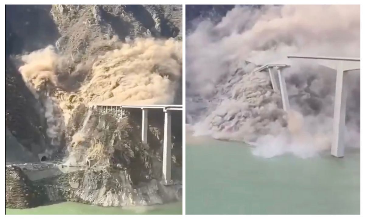Kinesiska statskontrollerade medier skyllde raset på ett jordskred. Videor som cirkulerar online visar hur en sluttning ger vika och brofästet förstörs, medan huvudbron förblir i stort sett intakt.