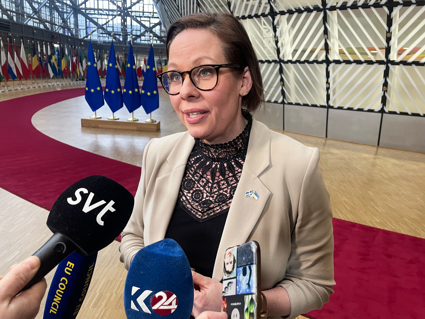 Utrikesminister Maria Malmer Stenergard (M) efter torsdagens EU-möte i Bryssel. Foto: Wiktor Nummelin/TT