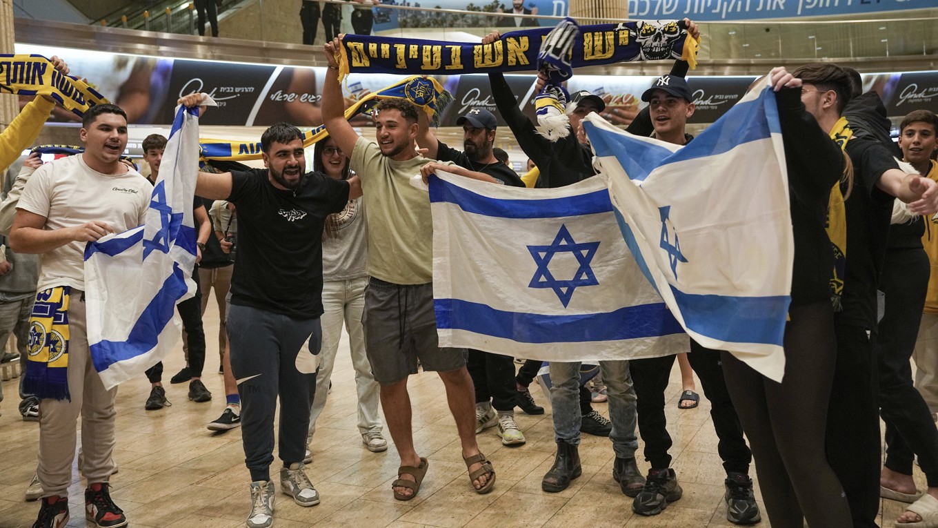 Israeliska fotbollssupportrar attackerades då av personer som ropade palestinska slagord efter en fotbollsmatch mellan nederländska Ajax och israeliska Maccabi Tel Aviv.