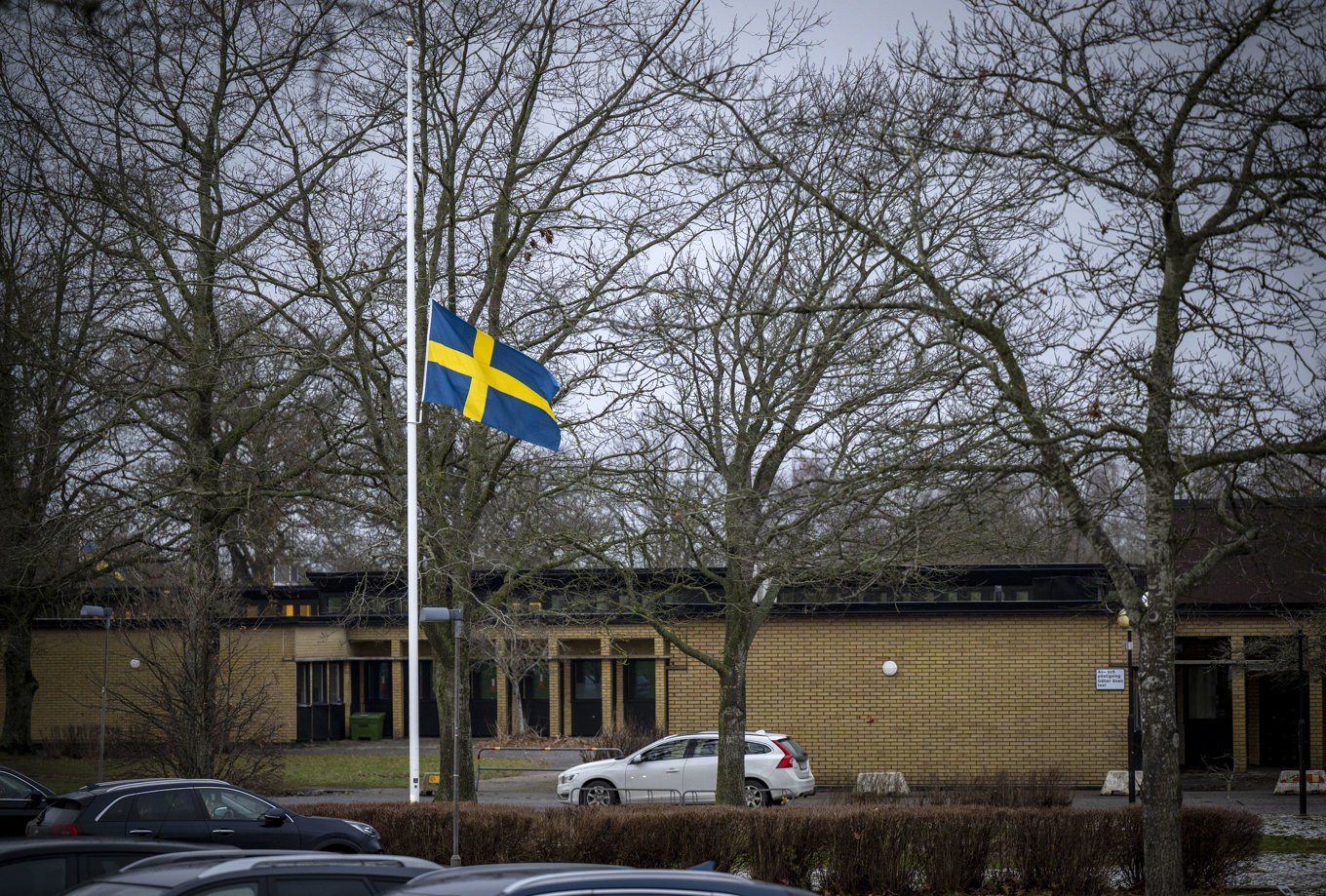 Flera skolor i Hörby kommun flaggar på halvstång. Foto: Johan Nilsson/TT