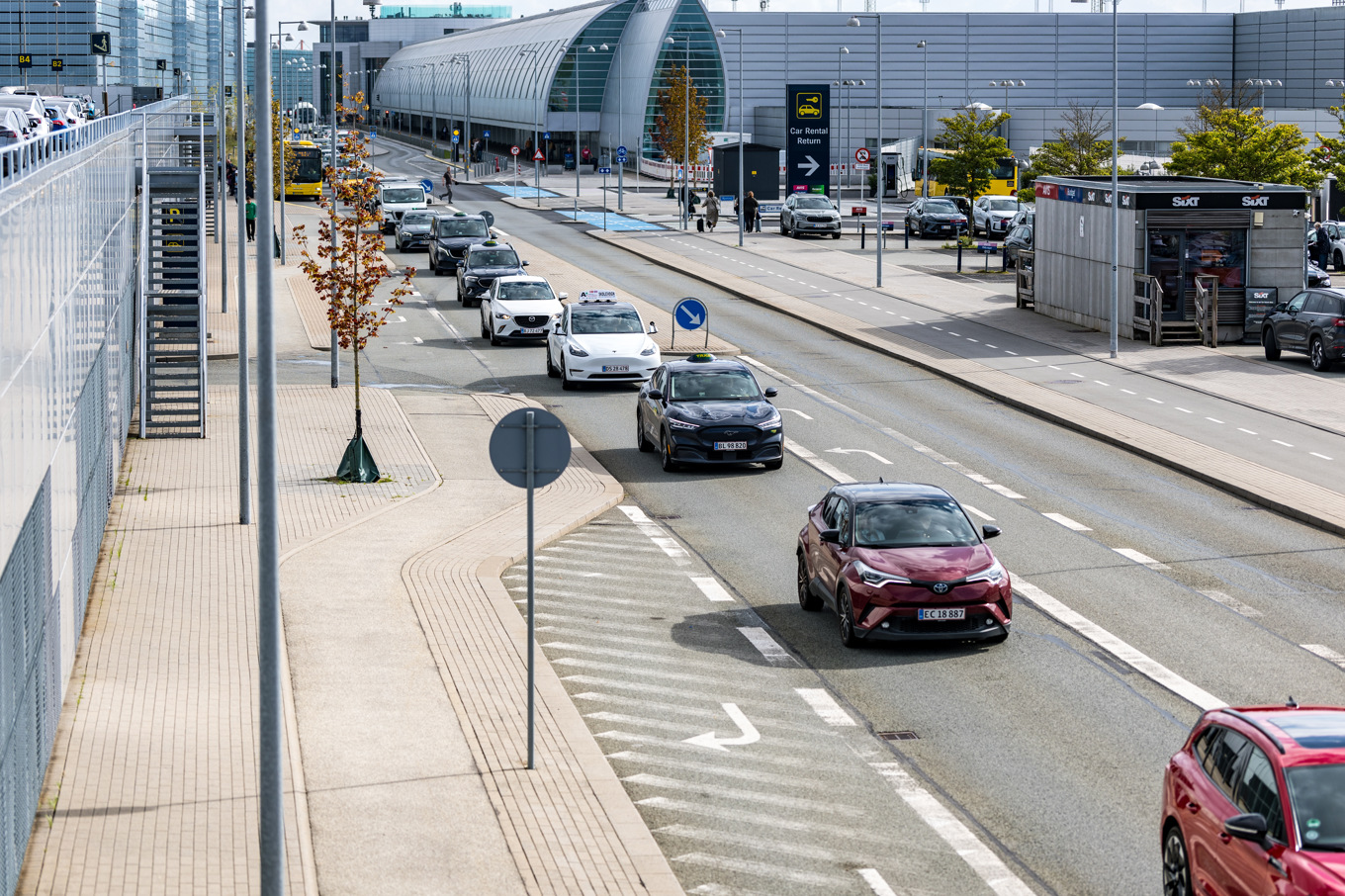 Bilkö i närheten av Öresundsmotorvägen i Köpenhamn efter att Öresundsbron är avstängd. Foto: Steven Knap/Ritzau Scanpix