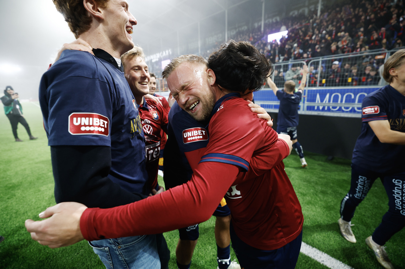 Glädjescener i Örgryte efter avancemanget till allsvenskan. Foto: Stefan Jerrevång/TT