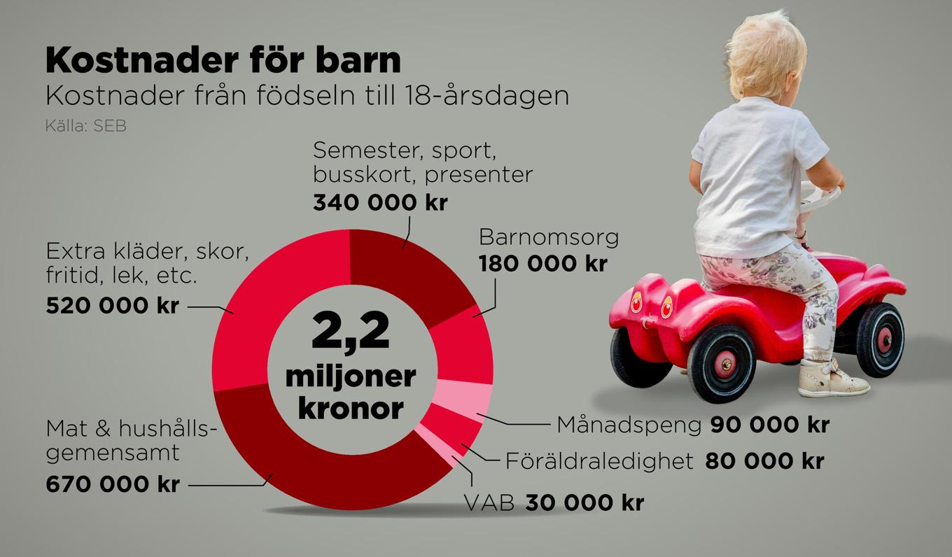 Kostnader för ett barn från födseln till 18-årsdagen år 2026. Foto: Anders Humlebo/TT