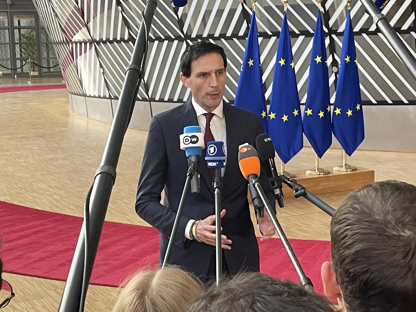 EU:s klimatkommissionär Wopke Hoekstra på väg in till tisdagens extrainsatta miljöministermöte i Bryssel. Foto: Foto: Wiktor Nummelin/TT