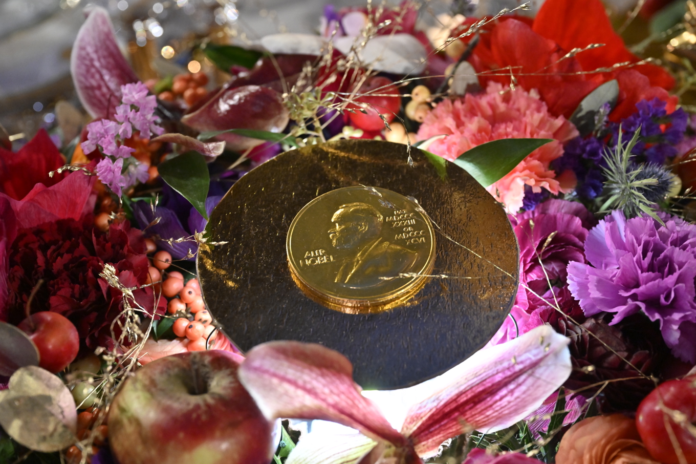 Dukningen pryds av plaketter med Alfred Nobel. Foto: Jonas Ekströmer/TT