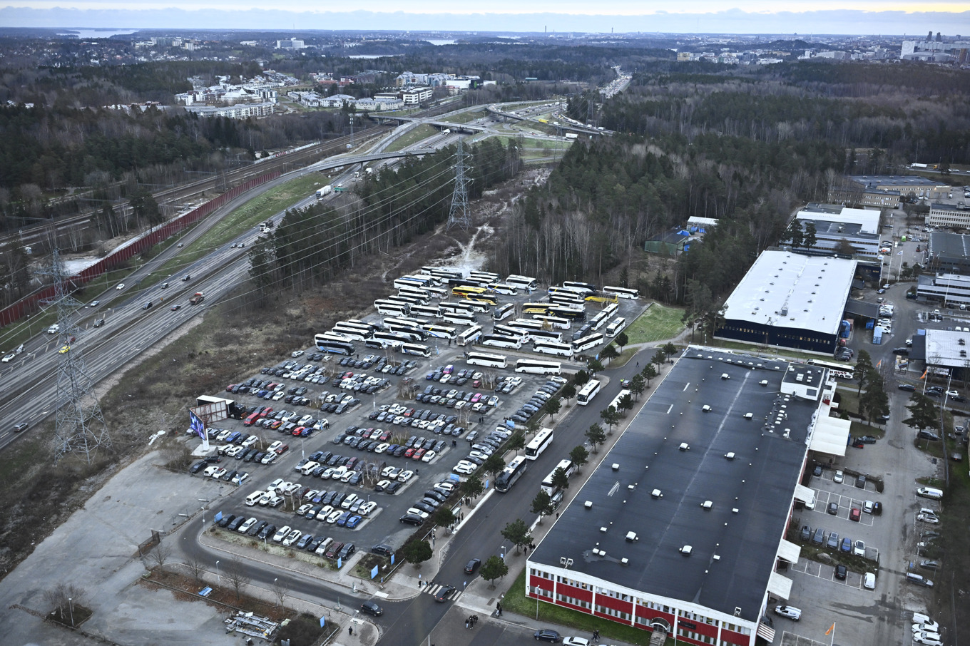 Området i Kista, utmed E4, är tänkt att användas till ett nationellt center för svensk fotboll. Foto: Claudio Bresciani/TT