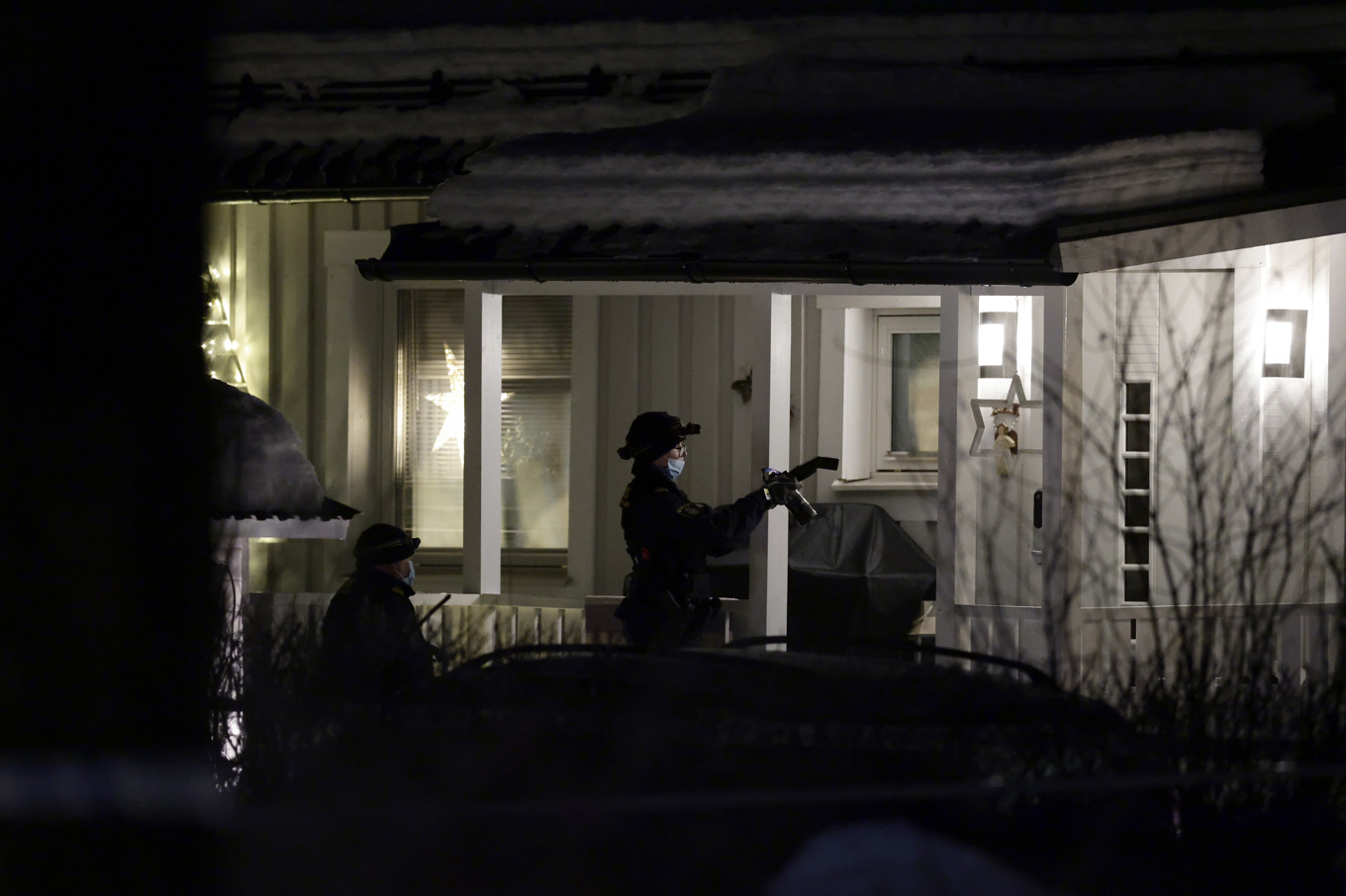Polisens tekniker undersöker brottsplatsen på juldagen. Foto: Mats Engfors/TT