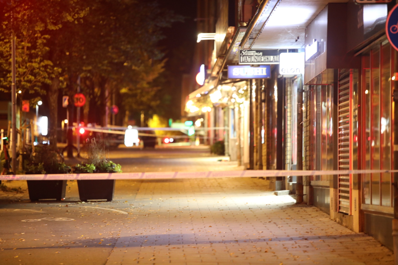 Avspärrningar på platsen kort efter skjutningen. Foto: Roger Nilsson/TT