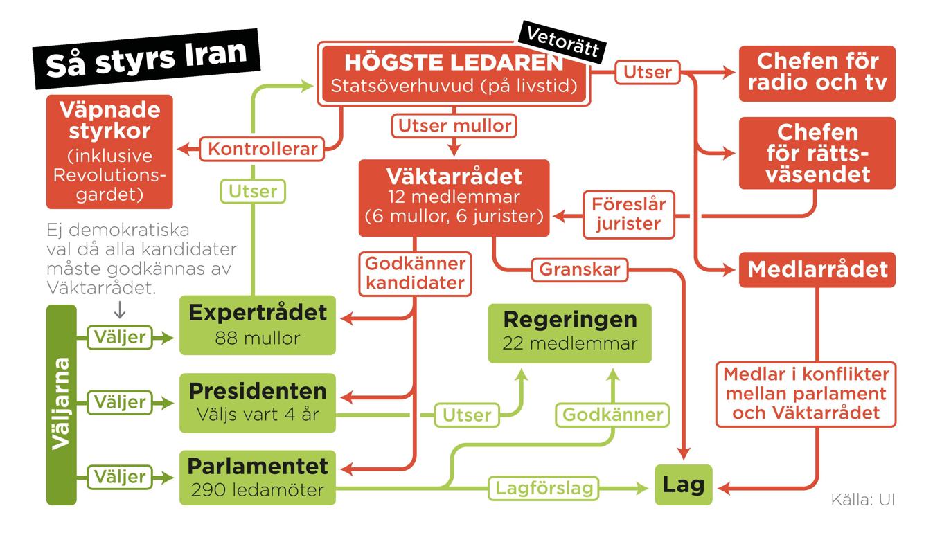 Irans politiska system är unikt i världen och ger den högste ledaren sista ordet i alla frågor av vikt. Foto: Anders Humlebo/TT