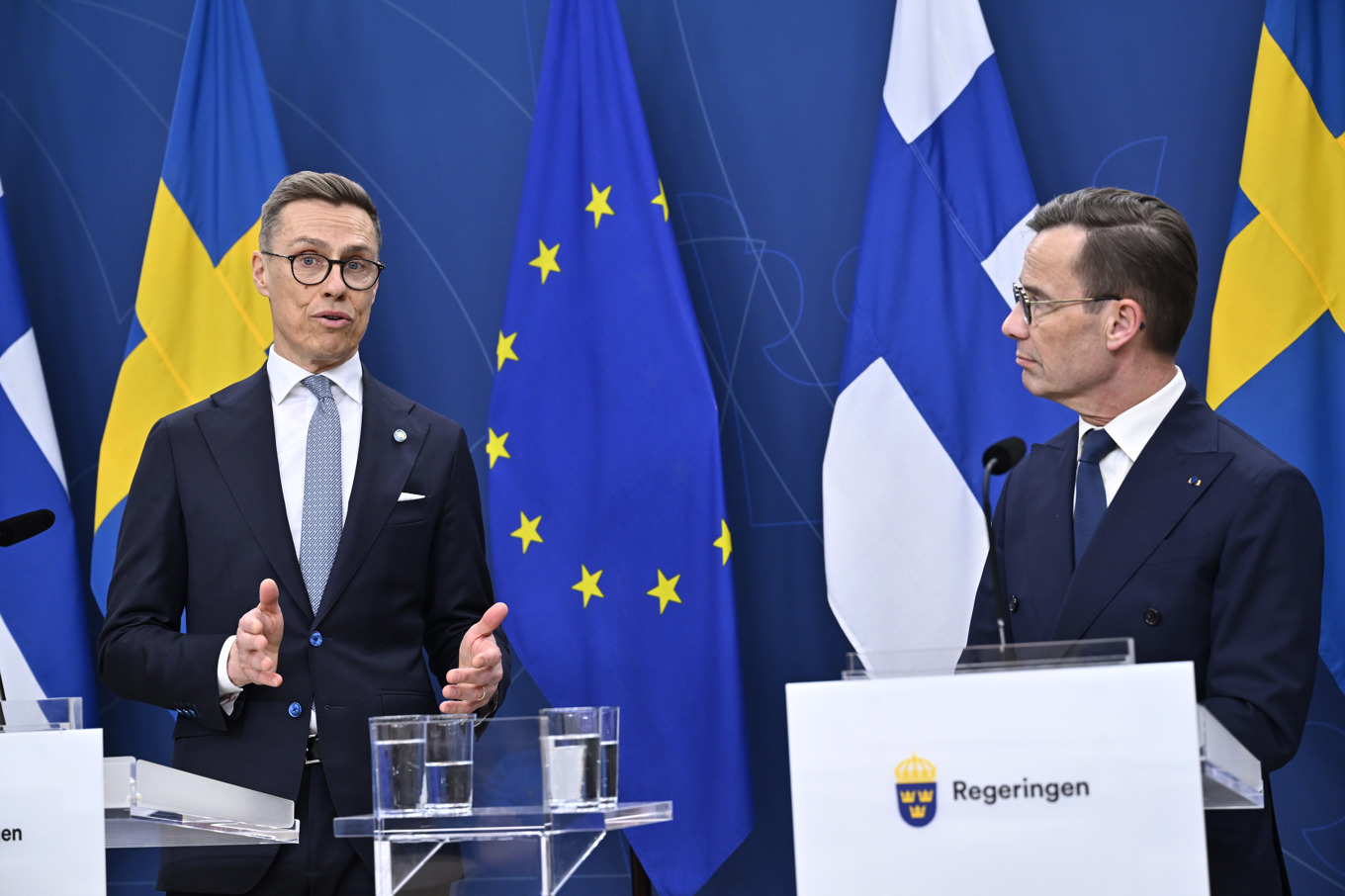 Det säger Kristersson under en gemensam pressträff på tisdagen med den finländske presidenten som traditionsenligt gör sitt första statsbesök i Sverige.