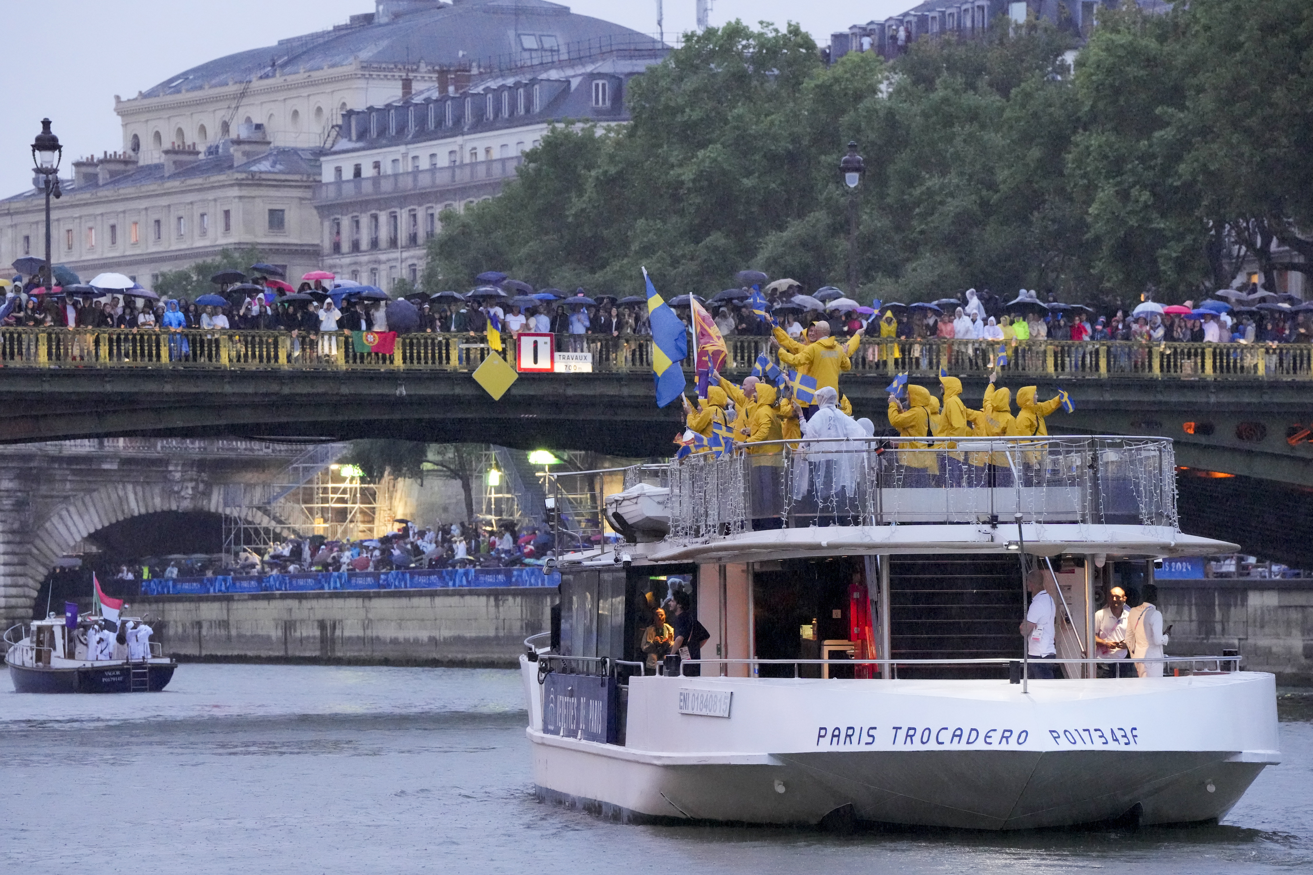 Samtidigt har människor fått leta reda på paraplyet. Regnet faller i Paris, men hittills ser idrottarna ut att vara vid gott mod. Många av dem som har tävlingar under lördagen har hoppat över invigningen, den är inte slut förrän en bra bit efter klockan 23.