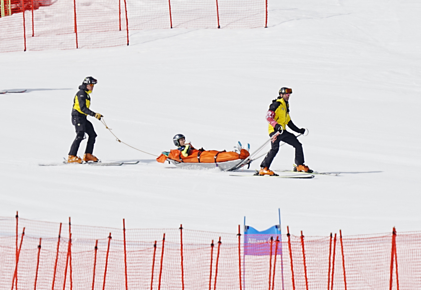 Efter en knapp kvart kunde Lindström för egen kraft lägga sig i en pulka och han fördes nerför backen. Han fördes till sjukhus för vidare undersökning.