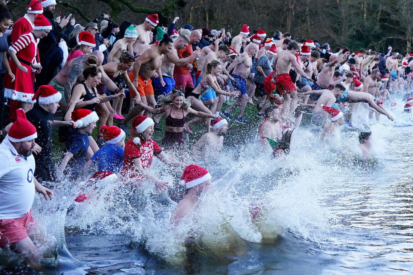 Juldagen lockade som vanligt många européer som inte drar sig för ett iskallt dopp – med eller utan tomteluva.