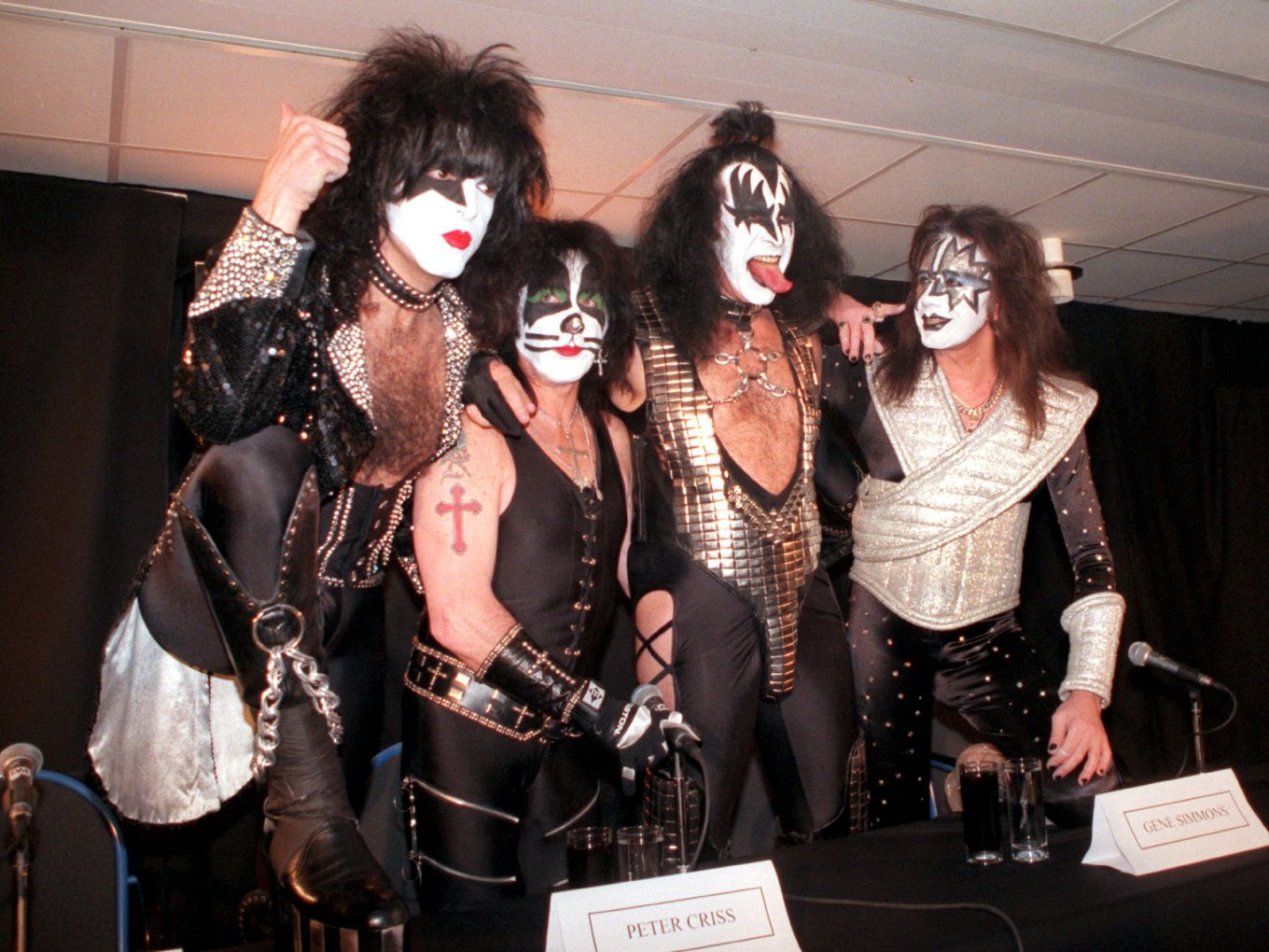 Pop-gruppen Kiss i Stockholm 1996. (fr.v.) Paul Stanley, Peter Criss, Gene Simmons och Ace Frehley. Foto: Fredrik Sandberg/TT