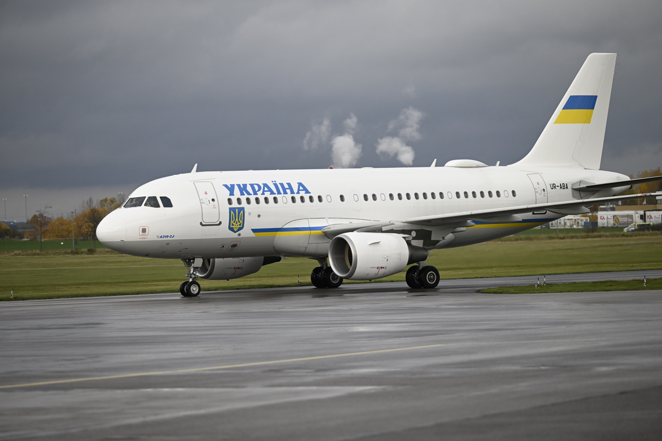 President Volodymyr Zelenskyjs regeringsplan har landat på Linköping City Airport. Foto: Fredrik Sandberg/TT